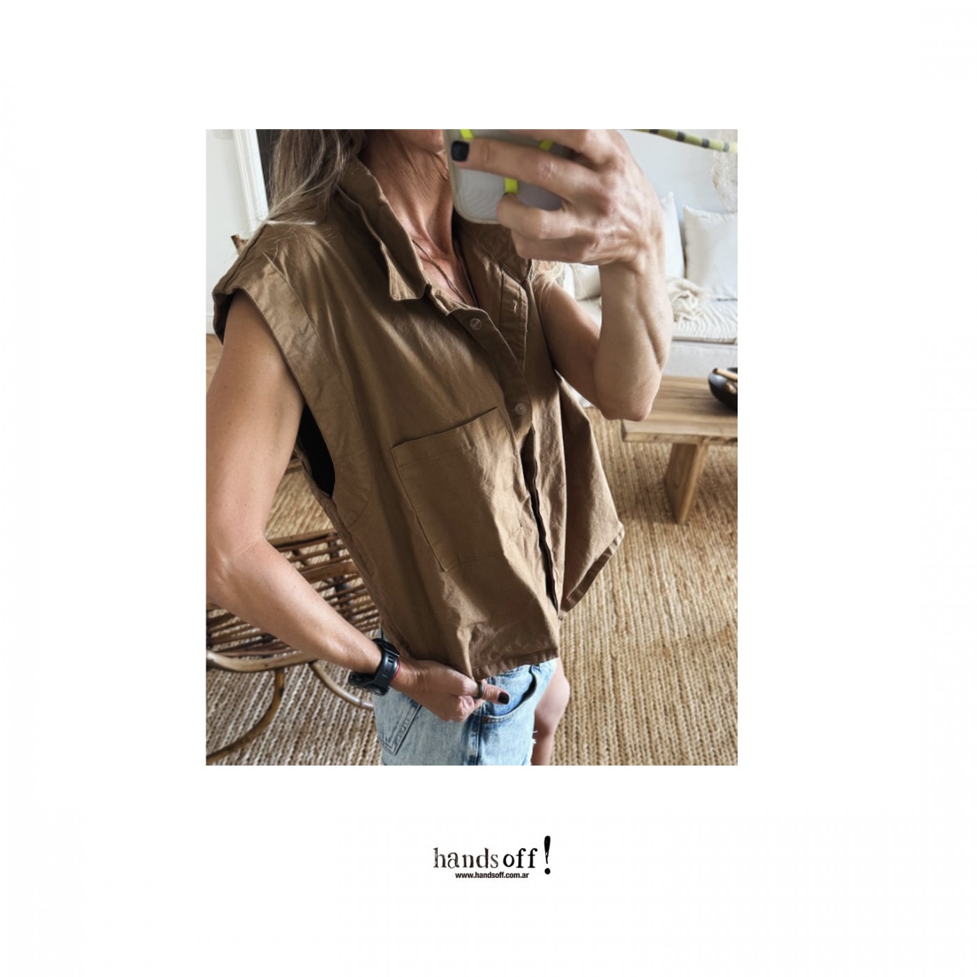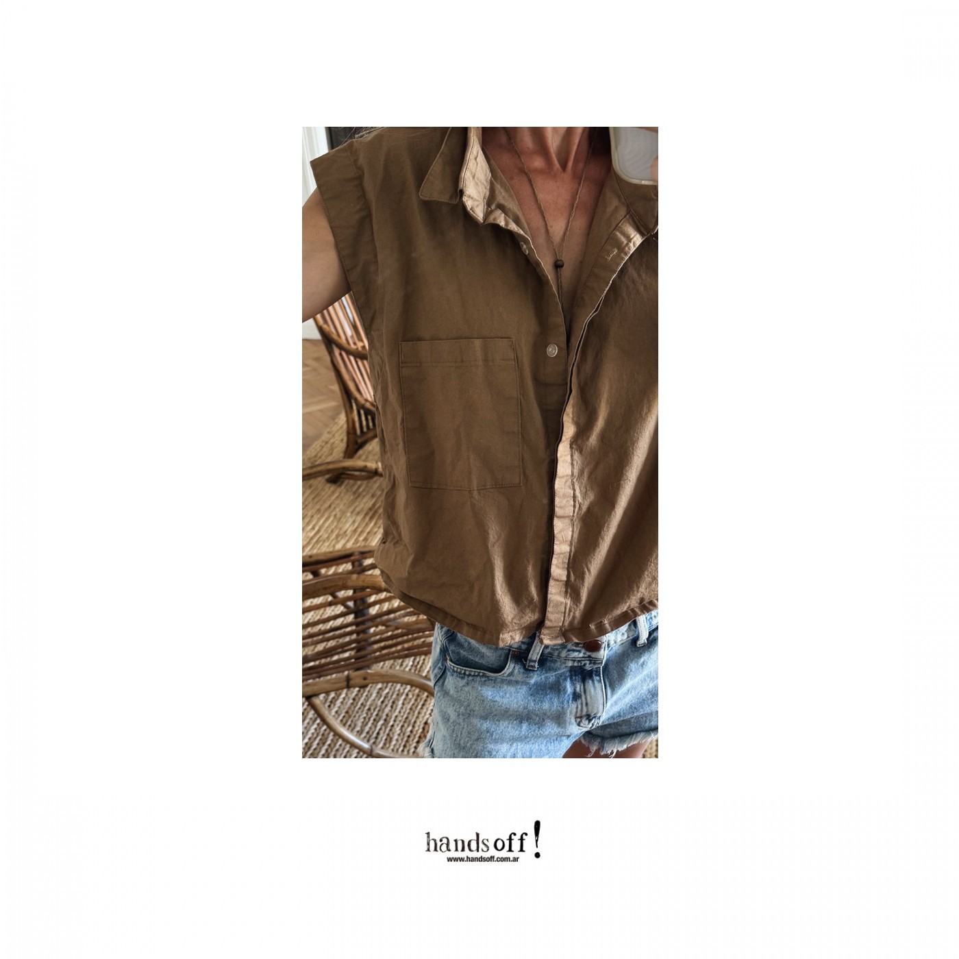 De corte amplio, con cuello camisero.